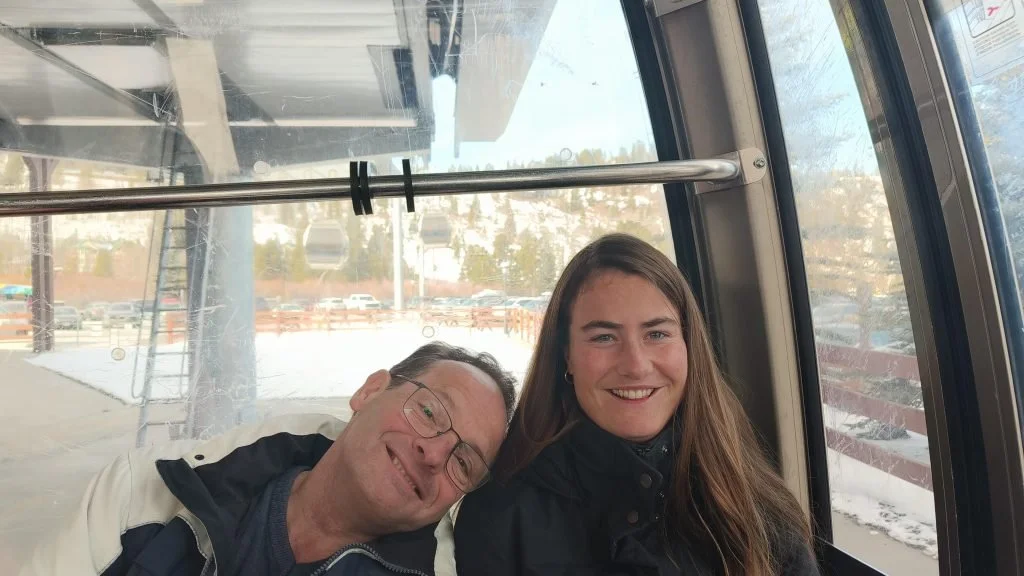 Na een zoektocht zijn we neergestreken bij Mom’s Baking Company, waar ook de taart van Tes en Jacob gemaakt is. Ondertussen spraken we af om Tessa en Jacob te ontmoeten op ‘Peak 8″ waar een groot ski resort is en vele liften en afdalingen samenkomen. We parkeerden de auto in de buurt van de gondel (die je gewoon gratis kunt gebruiken) in een parkeergarage (die dan wel weer $ 27 kostte). Tja nu gaan we nog verder naar boven dus moeten we toch echt onze sneeuwlaarzen aan en handschoenen vooral niet vergeten dachten we! Maar eenmaal boven waar de zon scheen waren we blij dat we onze jassen even uit konden doen en leken onze voeten te smelten in onze laarzen!