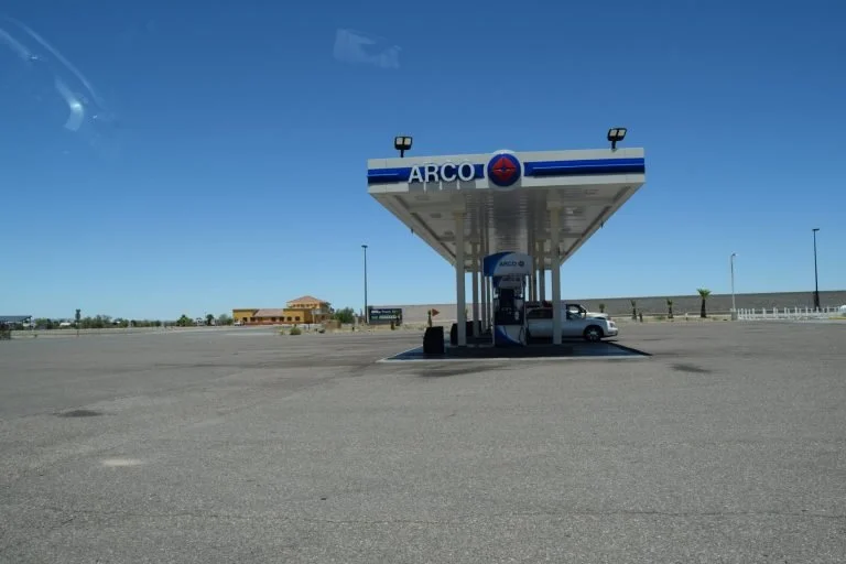 We reden bijna alle kilometers op 1 weg, door de Sonora dessert. Van te voren hadden we al gekeken wat de benzine hier en daar zou kosten, daar blijkt erg veel verschil in te zitten (niet alleen per plaats maar al zitten de pompen naast elkaar kan het dubbeltjes schelen).