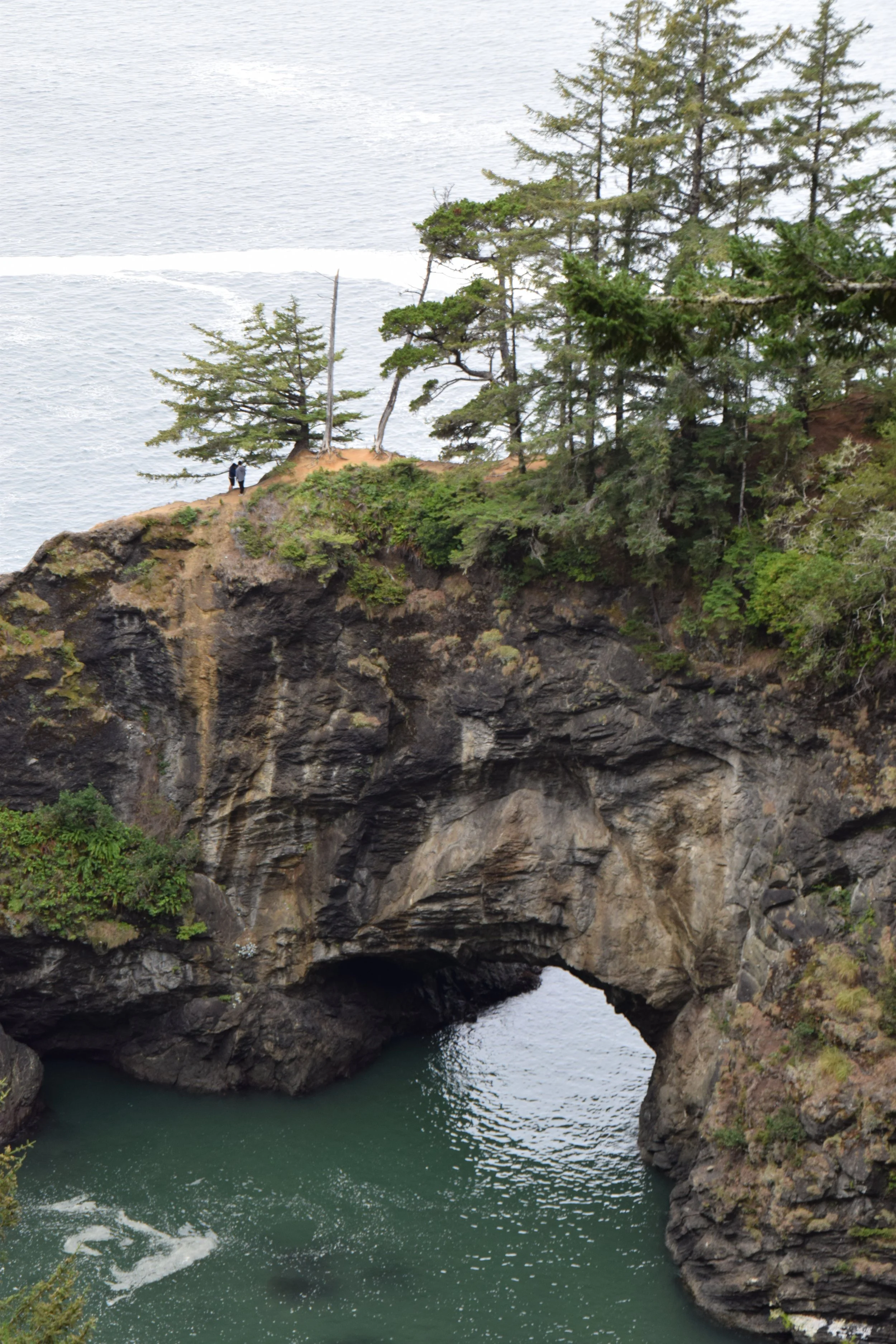Verder weer over de 101, we hebben nog veel stopjes gemaakt om over de oceaan uit te kijken en kochten bij een tankstation wat te drinken. De volgende halte was Battle Rock, waar in 1851 een gevecht plaatsvond tussen een Amerikaanse kapitein met zijn ingehuurde mannen en de native stammen die daar woonden.