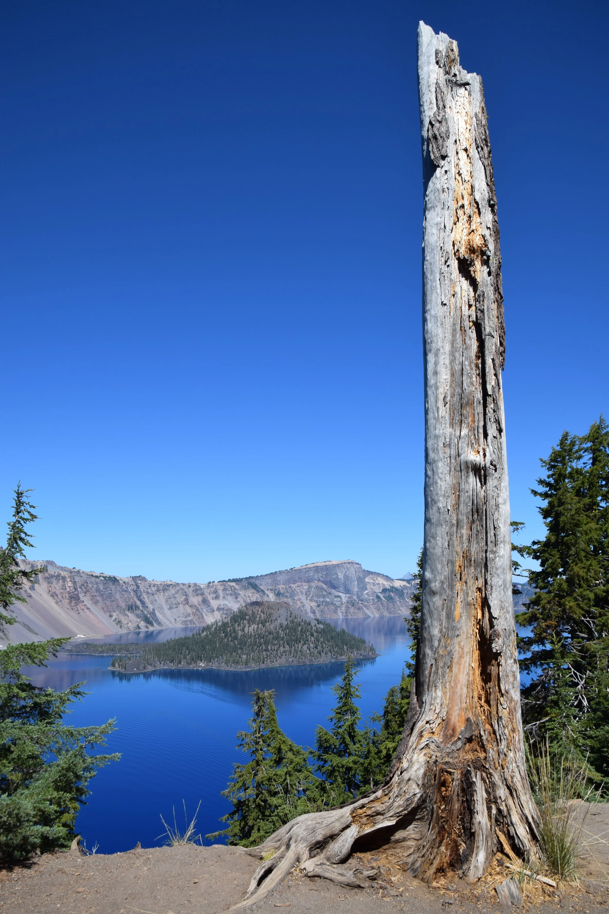 Er stond langs de weg ook nog een bord dat we rekening moesten houden met 2 uur vertraging door drukte maar dat bord was gewoon niet weggehaald waarschijnlijk want het was super rustig. Ook de East Rim Drive was gesloten vanwege groot onderhoud, dus hebben wij het gehouden bij een wandeling vanaf het visitor center. Maar mooi was het zeker! Wat een blauw water. En dan te bedenken dat je over een kraterrand loopt met voor je het diepste zoetwatermeer van Amerika. Het wateroppervlak was bijna rimpelloos. Op een van de foto’s staat een uitleg over hoe het meer is ontstaan na uitbarsting van de vulkaan ‘Mazama’ zo’n 7.700 jaar geleden. Oh ja over foto’s gesproken, er kon geen keuze gemaakt worden uit de foto’s van de ‘golden-mantled ground squirrel’ dus die staan er allemaal bij 😇