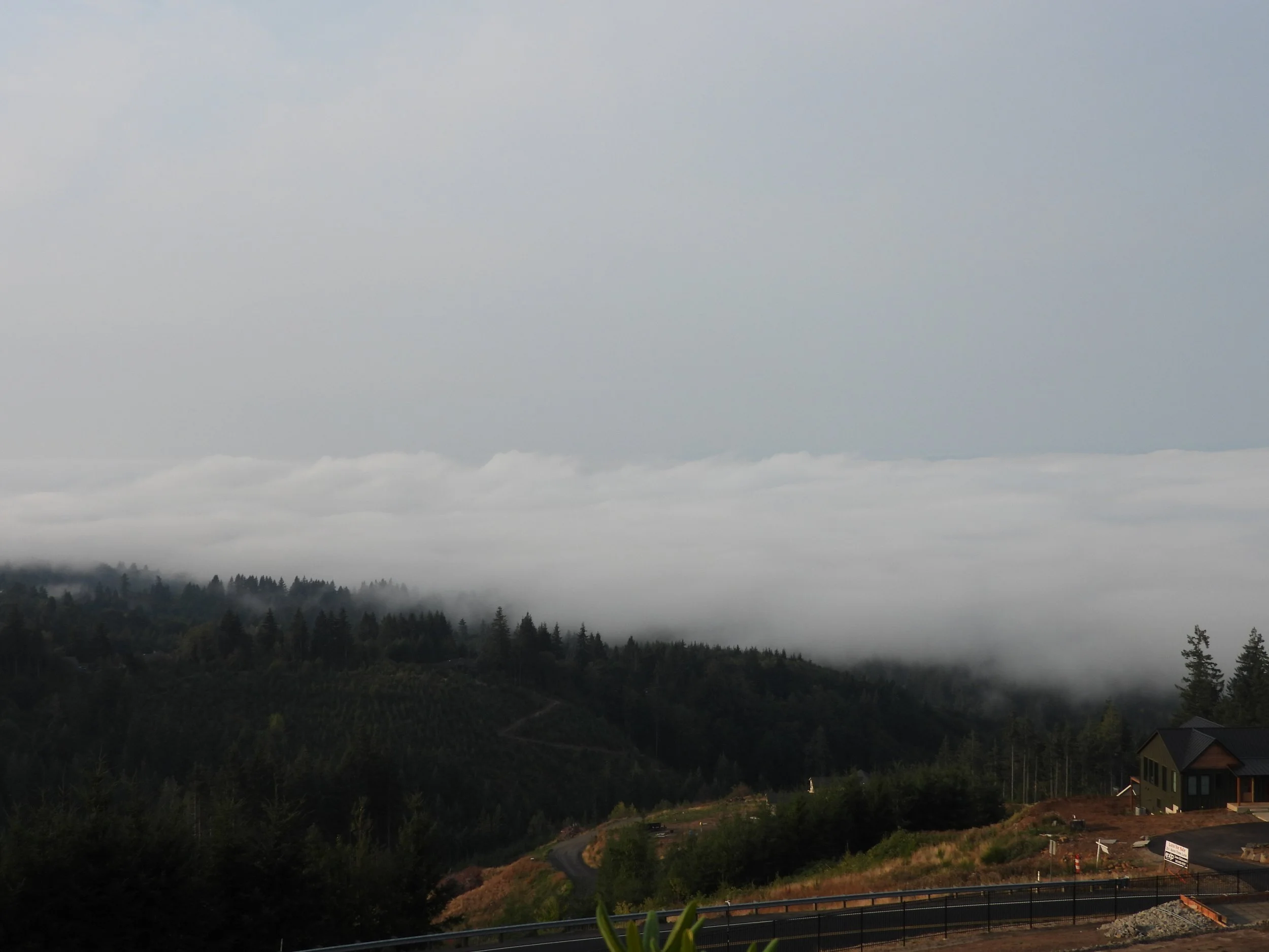 Het is vrijdag vandaag en we vertrekken richting Mount Hood Forest, waar we de komende tijd zullen verblijven. De nacht was voor Eddy niet al te fijn want hij had ruzie met het kingsize matras en rolde naar eigen zeggen steeds naar het midden van het bed 😉 Het uitzicht was prachtig zo in de vroege ochtend, een dikke wattendeken die over de rivier ver beneden ons ligt. De route was uitgestippeld zodat we weer bovenlangs de Columbia River zouden rijden, dat vinden we nou eenmaal het mooist al is de reistijd langer. Om 10.30 zijn we op pad gegaan, niet te vroeg want we kunnen pas om vier uur inchecken vanmiddag. Een paar stopjes hier en daar voor wat drinken of een tijdje aan de waterkant staan van de rivier. Er was nu maar 1 persoon met een foilboard op het water. Ook nog even getankt. We hadden zelfs wat regen onderweg 🌦