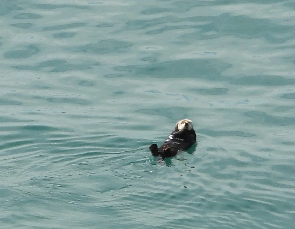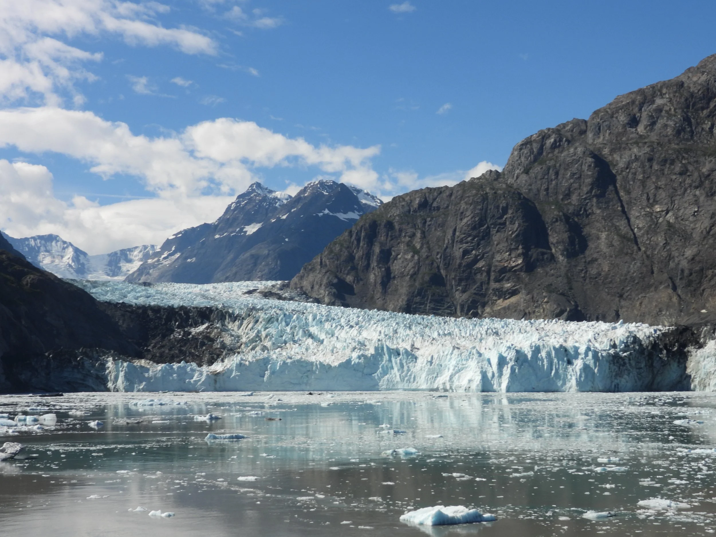 Het was trouwens fris koud, maar gezien de hoeveelheid ijsblokken die we zagen drijven kan het ook geen 25 graden zijn natuurlijk. Behalve de ijsschotsen en blokken zagen we heel veel otters, die vinden het hier heerlijk blijkbaar. Ook sealions lieten zich genoeg zien. Maar waar het vooral om ging vandaag waren de gletsjers, we hebben een stop gemaakt bij Johns Hopkins Inlet met de Lamplugh Glacier en bij Margerie Glacier. Margerie Glacier is een getijden gletsjer wat inhoudt dat hij de zee bereikt en ijsbergen afzet Hij is ongeveer 34 kilometer lang, 1,6 kilometer breed aan de voorkant, en ongeveer 107 meter hoog (waarvan 30 meter onder water).