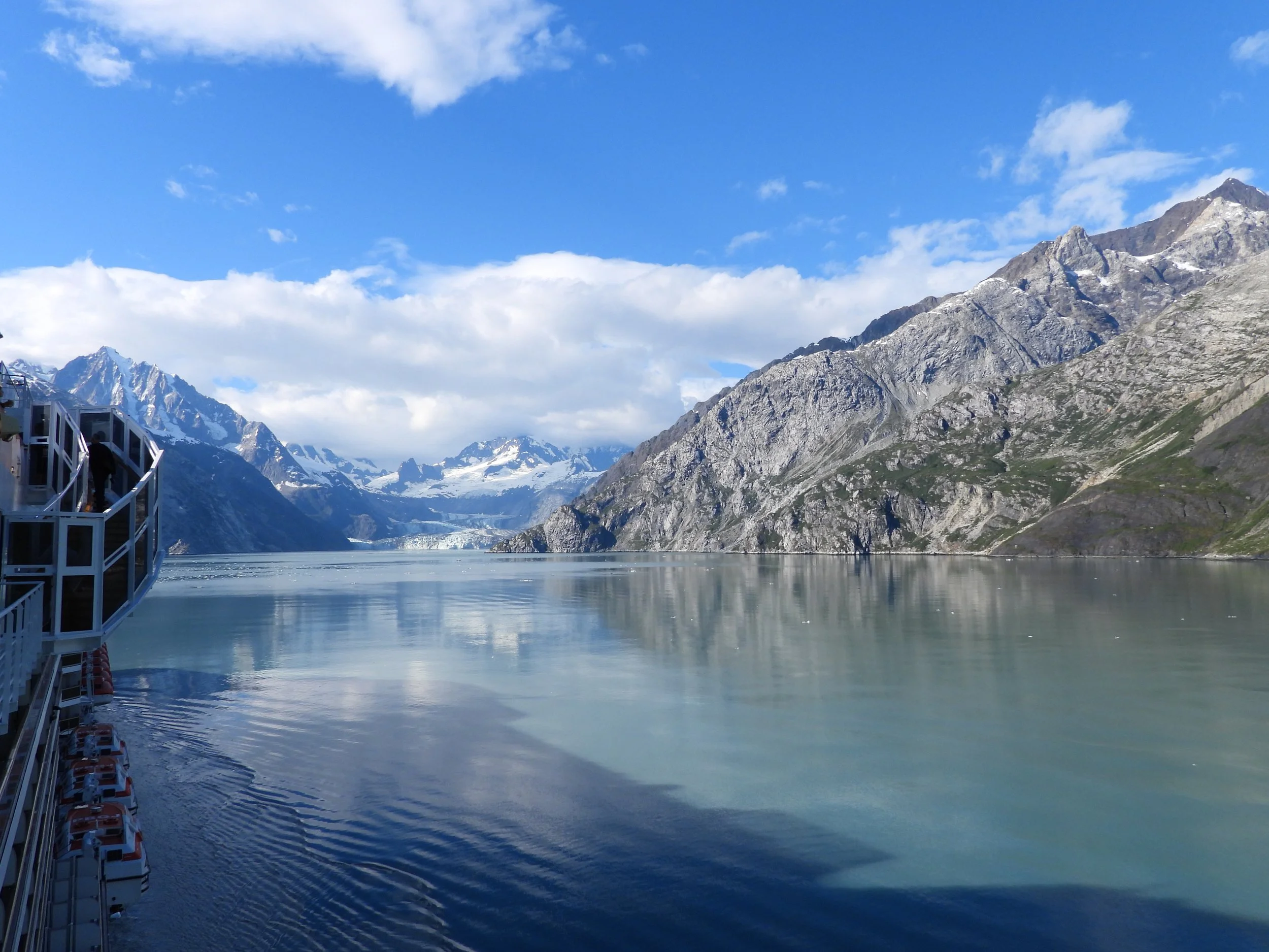 Het is niet te beschrijven hoe mooi het hier is en het zal nog een flinke klus worden om de foto’s uit te zoeken (dus alvast sorry als er een beeeeetje veel in het blog komen)! Om een uur of 12.30 konden we ons even losrukken van het buiten zijn en hebben we het Grand Dutch Café bezocht om een Bossche bol te halen en een broodje kroket 😊 dat waren we aan Tes verplicht, die eet in gedachten mee want ze had zo’n zin in een chocolade bol! Daarna zijn we op ligbedden gaan liggen, waar ik het eerste gedeelte van dit blog alvast type met een view to die for! Knalblauwe lucht, eilandjes en bergen om je heen. Niet normaal. De Rangers werden om 15.15 van boord gehaald, ze bedankten iedereen dat ze een cruise naar Glacier Bay NP maakten. Brengt toch veel geld in het laatje. Er worden jaarlijks vergunningen uitgedeeld aan de cruise maatschappijen, HAL heeft er altijd de meeste blijkbaar onder andere doordat ze een officiële partner zijn van de National Park Service van Glacier Bay. En we denken ook maar dat cruiseschepen tegenwoordig milieubewust bezig zijn.