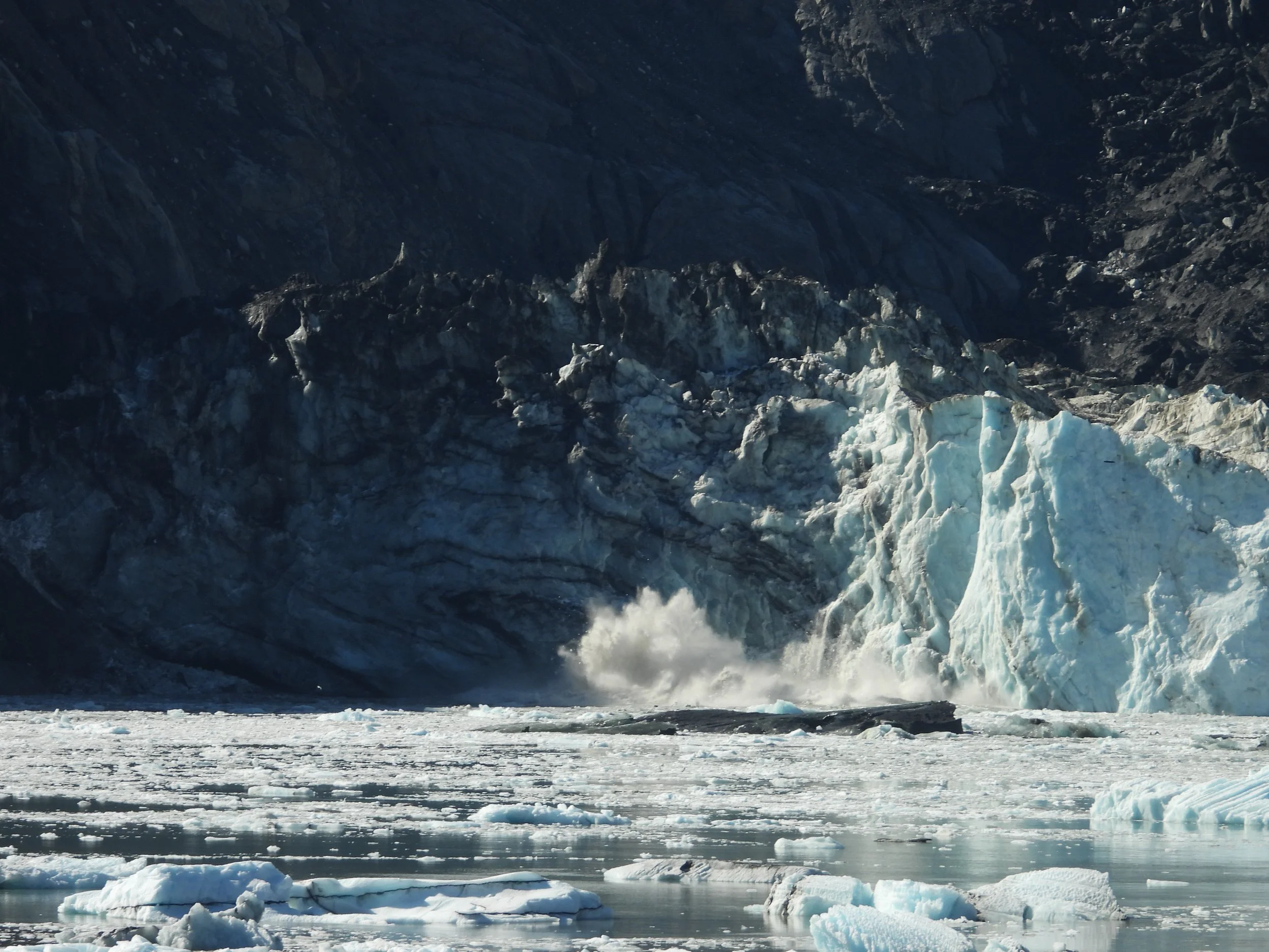 Beide gletsjers liggen in een soort arm, Inlet genaamd. Je kunt hier ook niet verder varen en alsof het niks is keert de kapitein het schip even om. Dat alles superlangzaam zodat iedereen volop kan genieten. Bij de laatste glacier zijn we een uur geweest, zo mooi daar! Dit is een zeer actieve gletsjer, we hoorden het harde gekraak zo nu en dan en zagen 2 keer een stuk ijs vallen (calving). 1 keer een donderend geraas alsof er laag een straaljager overkwam, dat bleek een lawine hoog op de gletsjer te zijn (konden we niet zien). Tijdens dit uur is het schip ook mega langzaam rondgedraaid om zo weer rustig terug te varen.